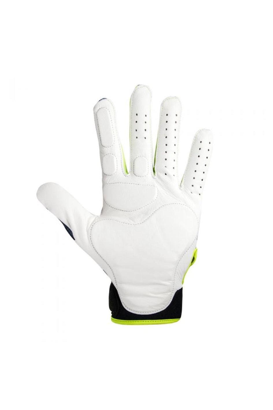 Lightweight and thin palm and finger pads absorb and spread shock over a larger surface area, limiting the mount of nerve damage in the hand after repeated hard balls. The padding extends all the way to the wrist for those wild bad hops and all the way up through the index finger. Extra padding is also on the wrist bone.