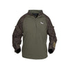 The Quarter Zip Utility Shirt keeps the weather at bay. SHEDS waterproof and breathable sleeves and shoulders are combined with a brush backed fleece core for the perfect outer layer. This is the garment you reach for on those misty fall days when a heavy jacket is too much and hoodie just won't keep you dry. The Quarter Zip Utility Shirt adds function to comfort with quick-grab shell loops perfectly located on the forearm, convenient Velcro-closure pockets on the upper arm, and Velcro wrist closure that enables a custom fit sleeve.