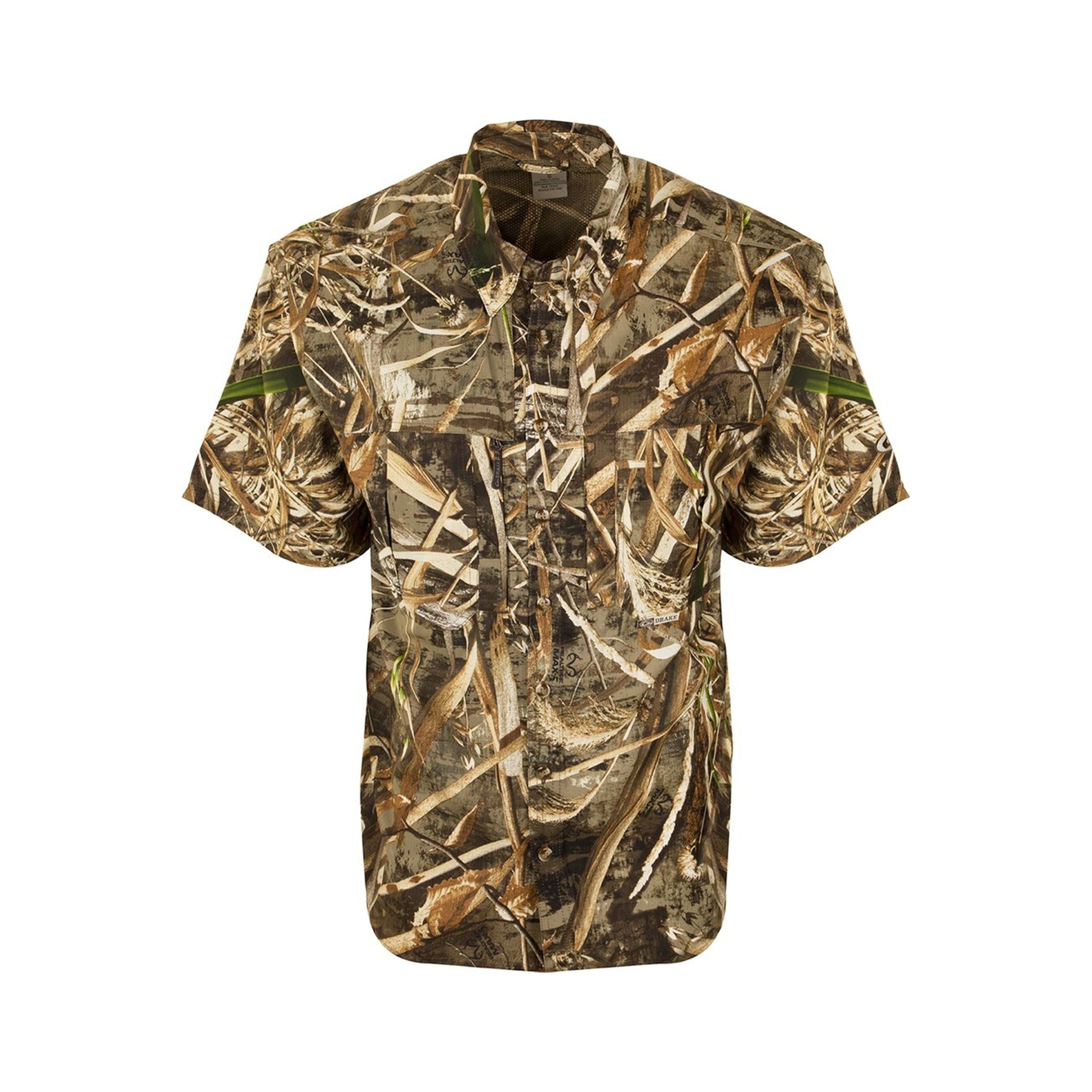 The Camo Flyweight Wingshooter's Shirt is Drake's lightest and most breathable Early Season hunting shirt, great for dove season and early goose or teal season. An ultra-lightweight 100% polyester construction is designed to dry quickly and wick moisture away from the body. Also contains Sol-Shield UPF 50+ sun protection, vented mesh back, a vertical Magnattach chest pocket & a vertical chest pocket.