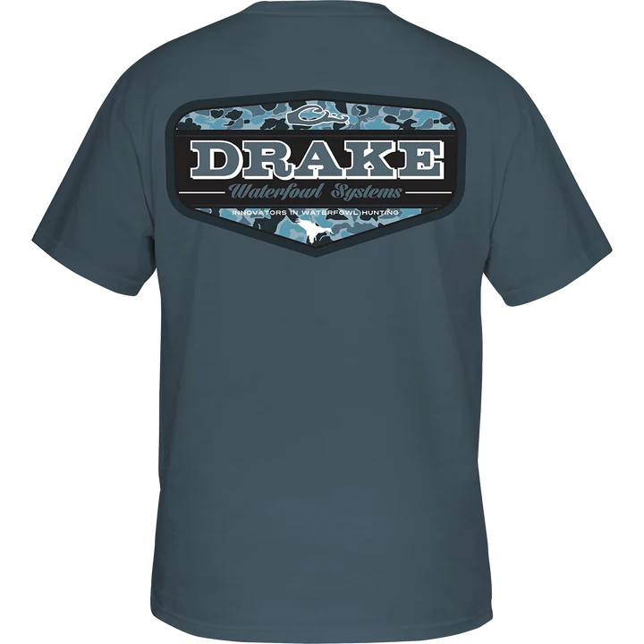The youth version of the Drake Waterfowl Graphic Tee is constructed with a 60% cotton and 40% polyester blend which provides softness and comfort. The Drake Waterfowl Graphic Tee has our Drake logo on the front and depicts a badge logo from our Old School Camo Series of back graphic tees.