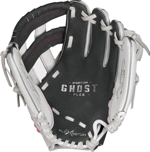 Beginner players will glove the game with the Ghost Flex Fastpitch Series. Soft genuine pigskin leather combined with embossed Hyperlite synthetic leather provide a lightweight feel. The Flex Notch™ Closure System creates easier pocket closure, and extended finger gussets provide a better fit and leverage. Players will have better grip and control from the super soft palm lining, and the Lock Down wrist strap design allows easy adjustability for the perfect fit.
